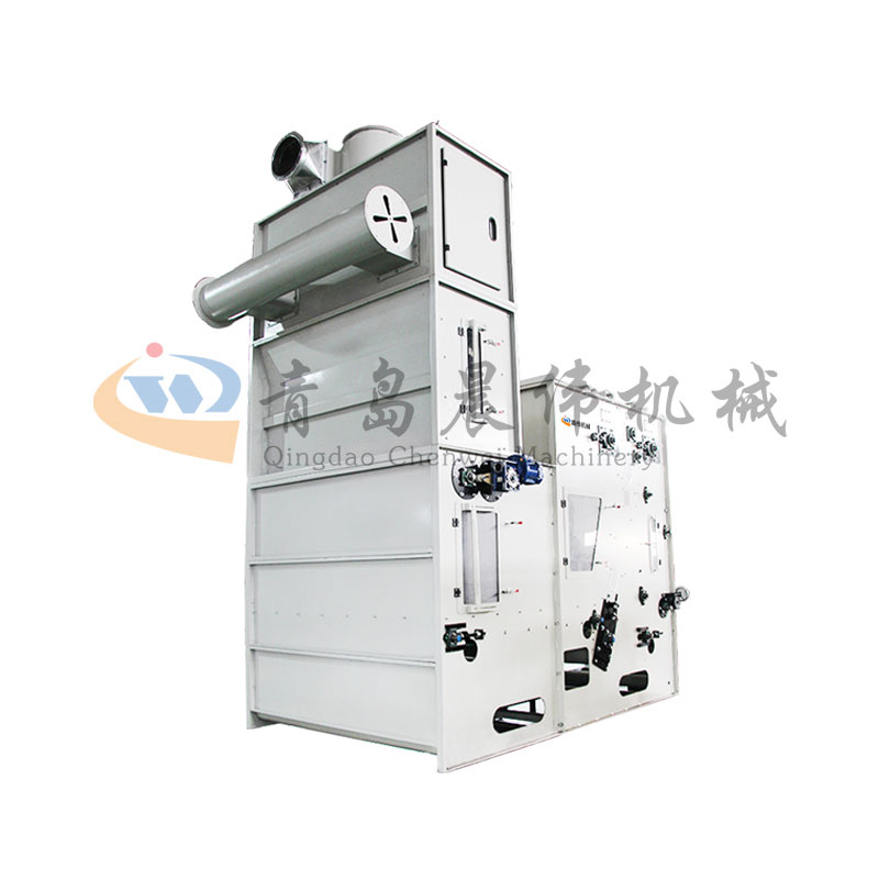 震動式給棉機主要式將經過初步開松的纖維集中收集在棉倉中,并且鋪成相對均勻,等厚,等寬的纖維棉層輸送到梳理機。
